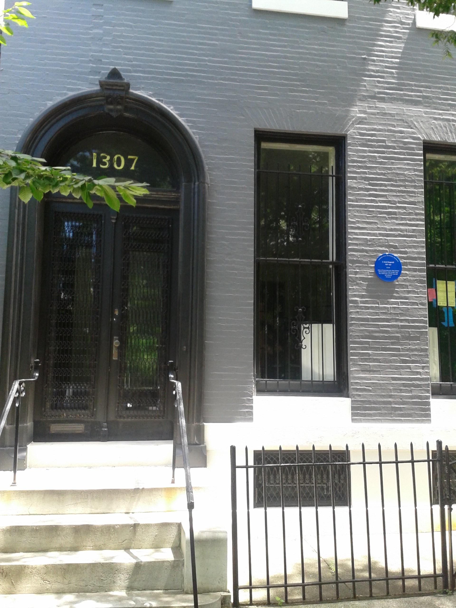Finding my friends still in bed (for I am an early riser these days), I told them of my plan and found them supportive. We begin the day by going to a huge outdoor farmers market that was filled with the wonderfully alive sights, smells and sounds of life that would disappear in just a few hours. From there we traveled to Bolton Hill and found his townhouse on Park Avenue. (La Paix has since been demolished). I recognized it instantly from seeing pictures online – a gray, three-story townhouse.