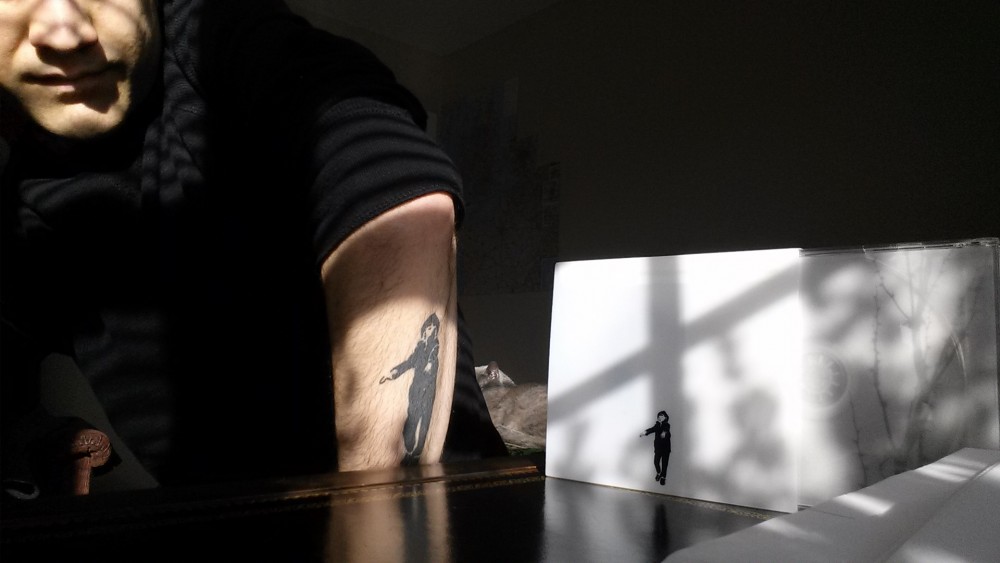 Ah, but this is supposed to be about writing. The Sigur Ros record I listen to most often while writing is 2002’s ( ). I got this record in early 2003 and played it absolutely non-stop. (Listening to Sigur Ros on headphones while doing pretty much anything makes it feel epic). Later that year I would meet another beautiful girl. She would turn out to be one of the most influential people that I would ever meet and inspired me to write, and to write often. That record and her collided in my mind – both inspiring on their own, once combined there was nothing I wanted to do other than to create beautiful things, drowning in words and dying happy. The record meant so much to me that for my 28th birthday in 2010 I got a tattoo of the sleepwalking child that is on the back cover. (Which, I’m sad to say, only two people I’ve met have recognized. I guess I’m just not meeting the right people.)