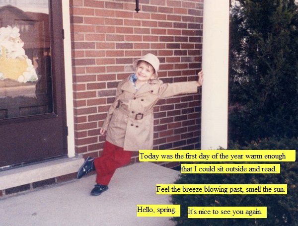 Dressed up as a detective on one of the first days of spring-For more in this series and the story behind it, see 13 years