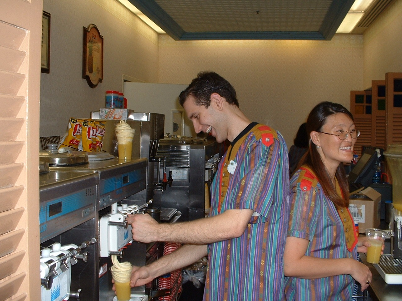 Yours truly, making a Dole Whip Pineapple Float at the Aloha Isle in Adventureland circa 2003