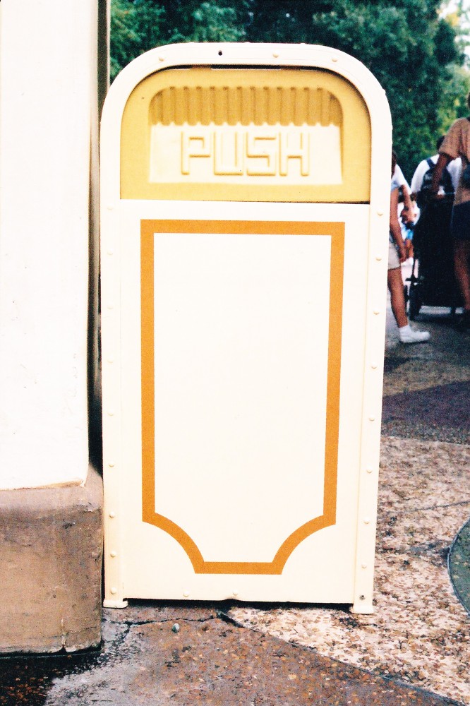 He who hesitates is lost. Or, in my case, 32 and unemployed and living in a place that couldn’t be more the opposite than where I want to live if it tried. Thus to close out this idea/chapter from my past, here are the original photos I took back in 2003. I have a number from the late 90s somewhere, but for now it seems unnecessary to unearth them. (I still, however, intend to get a tattoo of the tiki guy that is on the trash can at the Polynesian.)