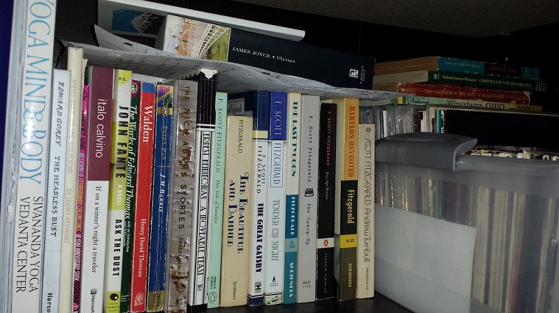 And so, for as much as I love books, and I truly do, I count only 30 on my shelf. Nine of those are nonfiction and consist of those I use regularly – health and philosophy – and those I hope to someday use regularly – European travel books. There’s also a bio of F. Scott Fitzgerald.