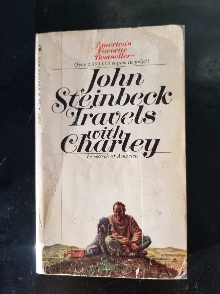 Another book that I found for a dollar, (this one, the 1968 Bantam Books edition, at Frugal Muse), John Steinbeck’s Travels with Charley is so far a delight. I have long been a fan of Steinbeck but didn’t know much of his later work, including this one. In 1960, when he was almost 60 years old, Steinbeck decided to reacquaint himself with America. And what better way to do this then driving across the country with his dog Charley? He says early on in the book that the comment he got most from people wherever he went was “I wish I was doing that.” And you know what, so do I. Back in 2014 I traveled around the country by myself for a total of 80 days, visiting old friends and making new ones. It was perhaps the best thing I’ve ever done, and in some ways, the hardest. The pandemic, along with other situations in my life, have made me feel trapped, like I’m sure millions of you feel as well. Starting out on this journey with Steinbeck made me feel like I can breathe a little more, be a little more free. I’m really looking forward to the rest of this book and am so glad I picked it up.