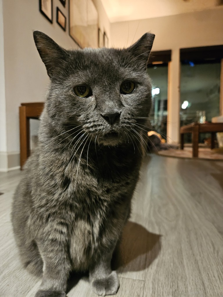 We found her atop a cat tree, cuddled up, in a room with several other cats. She was pretty reserved while others loved on us aggressively, but gave us head bonks. We immediately took to her but didn’t want to rush it so looked at every other cat there, which was a lot, and all deserving of homes. In the end there was little doubt. She’d been there for over a year, turned in when her previous owner died, and I think had become resigned that this was just her forever home. But maybe she was just waiting for the right people.