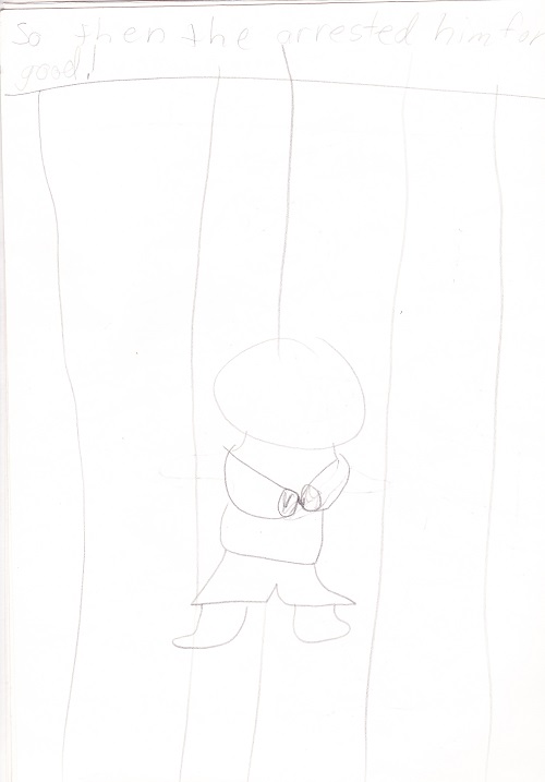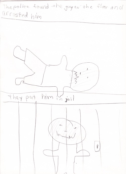 The police found the guy on the floor and arrasted (sic) him. They put him in jail.